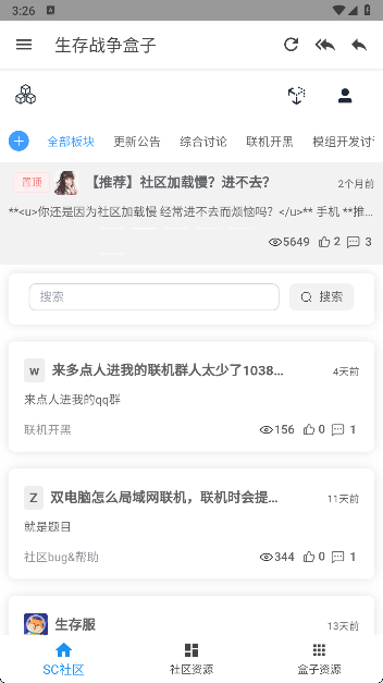 scbox生存战争盒子还提供各种信息攻略。从软件上,你可以直接去bilibili、Tik Tok和百度贴吧的游戏区。在这里,你可以找到很多志同道合的朋友,以及他们分享的游戏经验和信息,可以解决你在游戏中遇到的各种问题。有需要的可以免费下载体验。