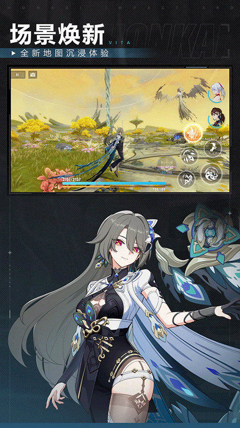 虽然是 “崩坏”IP系列的正统续作,《崩坏3》却并未沿用Q版角色+横版动作的游戏模式,而是利用自主研发的高级卡通渲染技术及工具,打造出了一款3D自由视角的动作手游。