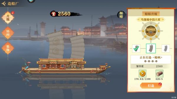 2、首先我们可以打造“造船厂”,升级后可以提升整体繁华度