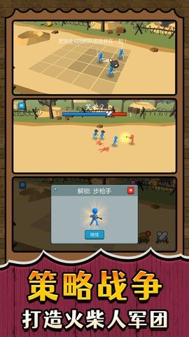 3、随时开启策略对决,解锁各种战争玩法,建造最强火柴人兵团。