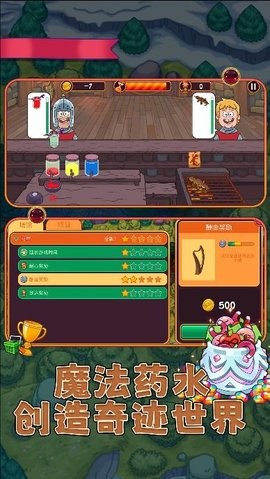 1、需要通过红、黄、蓝三种原色搭配出各种颜色的药剂饮品。