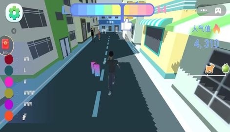 1、玩家操控甲亢哥穿梭城市街道,边走边秀操作,还得想办法甩开围观群众。