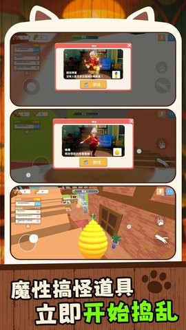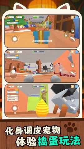 2、玩家将化身为一只调皮的猫咪,可以破坏沙发、打翻花瓶,甚至吓唬家里的其他宠物。
