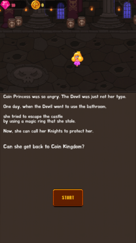 一部拥有别样内容的游戏故事,打造了公主和硬币的故事,玩家在其中只需要进行触控画面就能开始行动。你要在其中通过招募获得更多不同的勇士守卫王国的公主,还要在其中通过一系列的挑战避免硬币公主被抓。