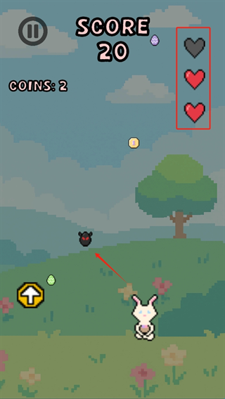 3、如果接到坏蛋就会扣一滴血。