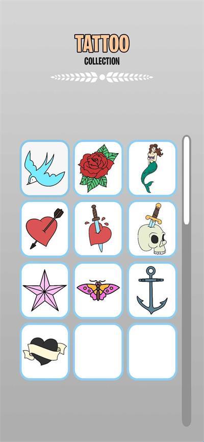 4、丰富的道具和材料:游戏中提供了多种纹身工具和材料供玩家选择和使用,让玩家可以尽情发挥自己的想象力和创造力。
