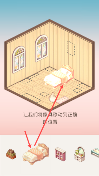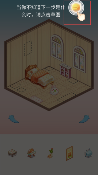 1、进入游戏,将对应的东西放置小屋即可。