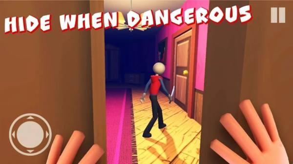 愤怒的男友惊吓的游戏氛围非常诡异,让人看着就想逃离,玩家需要在不被男友发现的情况下逃离这个家,有时还会出现恐怖音效,让人汗毛耸立,男友的游戏角色也非常吓人,尤其是他的眼神,玩家可以利用周围的物品将自己隐藏起来,寻找线索帮助自己逃离。
