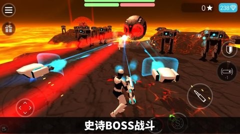 1、操控赛博战士驾驶机甲,使用能量武器与爆炸武器对抗外星机器人军队。