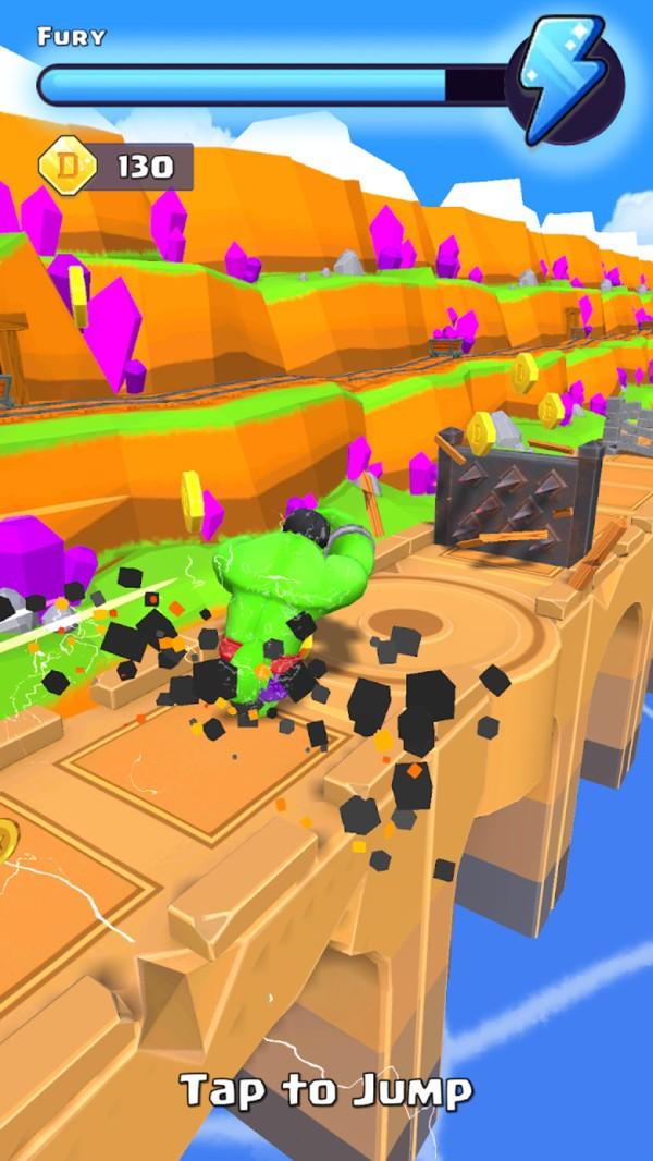 绿巨人奔跑粉碎游戏中玩家扮演的绿巨人可以四处破坏,因为你是巨人所以你有超强的破坏力,如果周围有人企图想要攻击你,你要优先将它杀掉,保护自己,在奔跑和破坏的过程中,你也需要小心尖尖的障碍物,游戏充满了激情,并且超级解压!