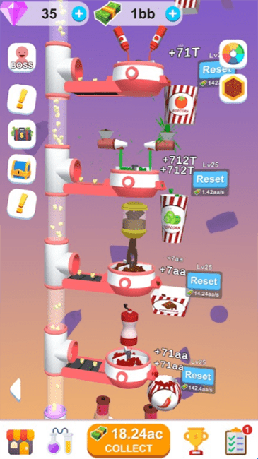 放置爆米花工厂有多种爆米花的口味和制作配方,玩家不仅可以自由配比新品种的爆米花,还可以雇员不同的员工为你管理工厂,优秀的员工还有特殊的生产能力,玩家也可以通过升级工厂的爆米花制作设备,可以提高设备的生产效率和产量哦~