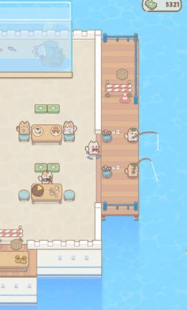 6、融入餐厅经营玩法,玩家捕获的鱼类可以作为食材制作各种美食,吸引猫咪顾客。