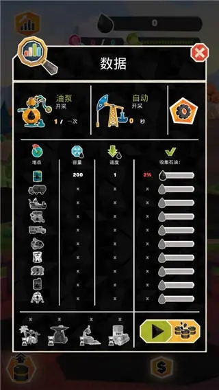 1、开荒前期,由于油量充足,建议优先购买粗管和马车,并将油库容量提升至第二级。同时,选择一个相对稳定的低价,如左边油价即使再跌也不会低于1.05的价位,然后大胆进行销售。