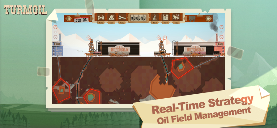 在城镇拍卖中获得土地,并用探矿者、鼹鼠或扫描仪发现石油。创建有效的管网,将石油输送到地面,并购买货车和筒仓进行运输和储存。等待合适的价格出售,或自己使用天然气来提高油价!