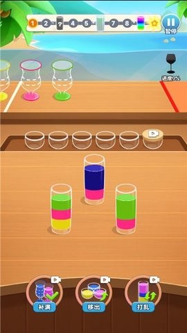 1、液体颜色逼真、容器动态细腻,搭配舒缓背景音乐,营造轻松解谜氛围。
