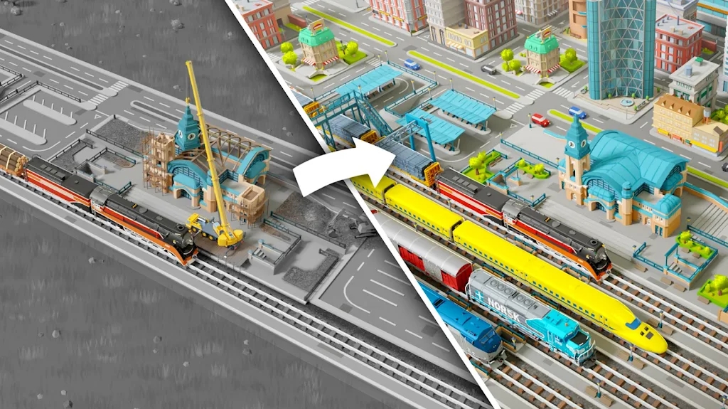 铁路大亨免广告版是一款超棒的铁路模拟经营游戏。 在游戏中,玩家化身为铁路大亨,开启打造铁路帝国之旅。你可以在广阔地图上自由规划铁路路线,运送乘客与货物,赚取丰厚收益。还能解锁并收集各种不同类型的火车,升级机车、列车站等设施。游戏有着白天黑夜交替及雨雪雾等天气特效,地形丰富,可自由设定峡谷、河流等。没有广告的干扰,让你能更专注地体验经营铁路的乐趣,享受规划线路、拓展业务、打造全球铁路网络的成就感。