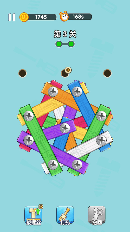 3、挑战模式:打螺丝达人手游中设置了不同的挑战模式,玩家可以不断刷新自己的最高记录,挑战最佳的大螺丝达人称号。