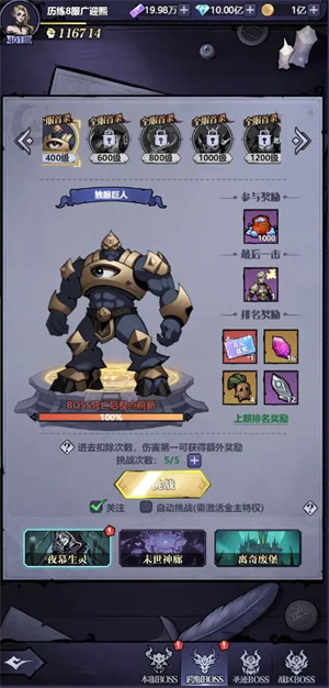 2、挑战世界BOSS,获得稀有奖励和成就,成为众人瞩目的焦点。