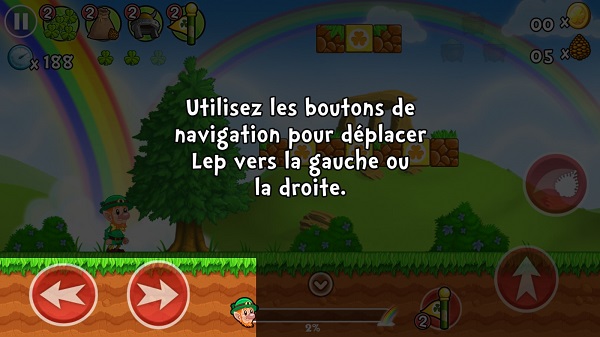 进入游戏后,首先会出现一段游戏背景漫画,Lep和朋友们享受阳光的时候,突然间,邪恶的巫师盗走了精灵村庄的黄金,绑架了所有的村民。
