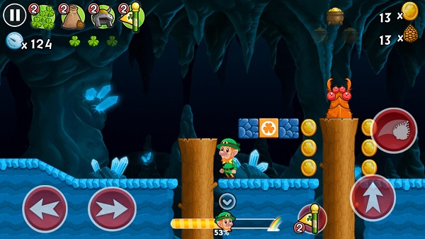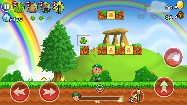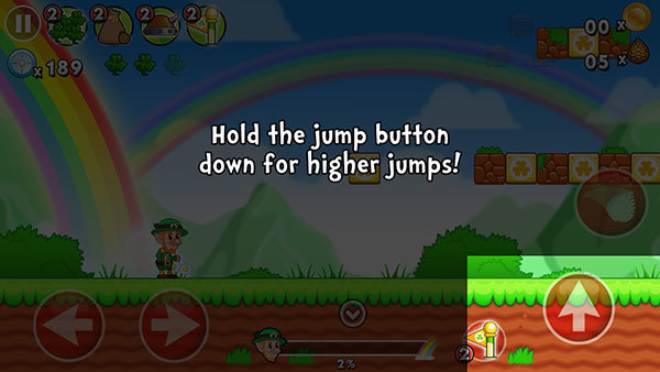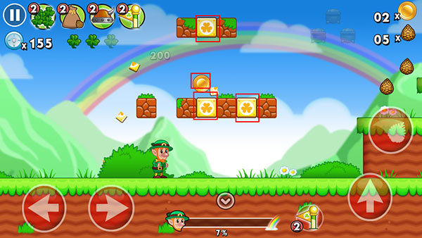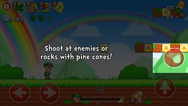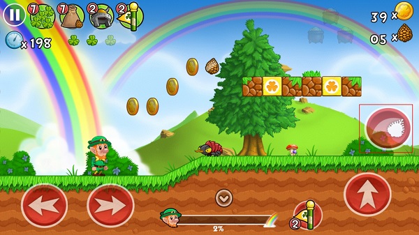 在游戏中,左边的左右按钮式用来操作水管工人的移动的,而右边的向上的箭头则是代表着跳跃,可以帮助我们躲避一些障碍物以及撞开头顶的一些石头,而上面的发射按钮则是可以用来发射收集到的坚果。