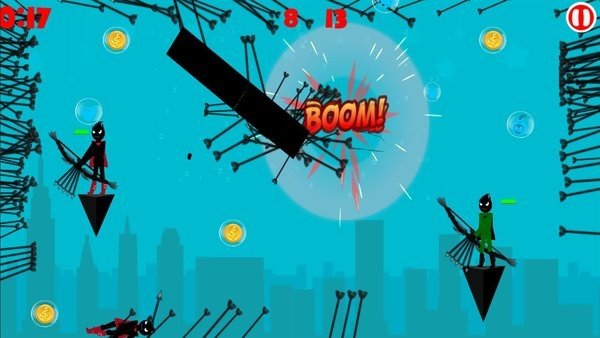 1、游戏的场景布局:游戏画面简洁明了,场景布局非常有趣,人物形象采用了火柴人的画风,给玩家带来了不一样的感觉。