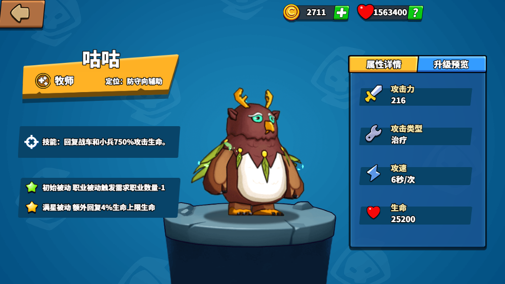 作战思路:利用咕咕的特性,职业被动触发需求-1;也就是说我们只需要带电法、雷法加咕咕,就可以触发电法法术职业被动全体攻速+120%。同理也可以触发铁骑战士职业被动铁骑、刀客加咕咕,增加全体攻击力2000和免疫控制。这样就可以在前期触发高攻速高攻击的组合。