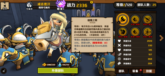 在小小军团2免费版中保证前排拥有足够满足上阵条件的英雄,优质的前排英雄: