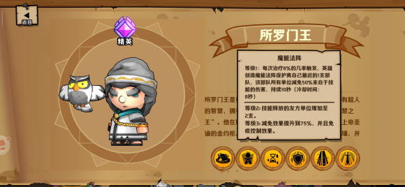 2.所罗门 大后期超强牧师,能给予2个部队免控+75%技能减伤。在前排可配合亚瑟王、黑矛等英雄,在后排可克制羊法,催眠法,兰斯洛特等英雄。缺点是释放不够稳定,且发育时间过长。