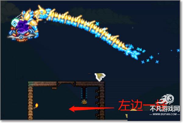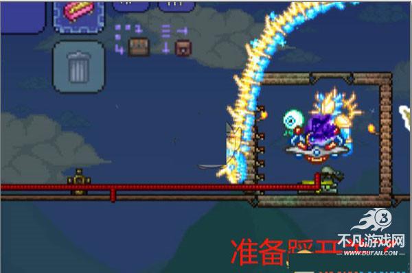 1、首先搭建一个战斗平台,最好在npc居住的环境之上,宇宙之下,长度最好超过100格有助于后期打新三王中的魔眼和硬长直;