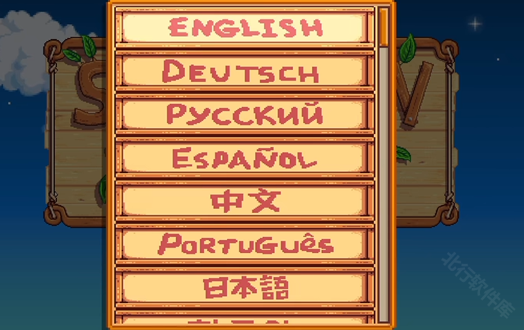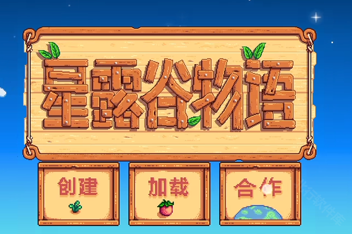 1、先切换成英文,在标题屏幕上,你会发现星露谷的Logo上附有四组叶子