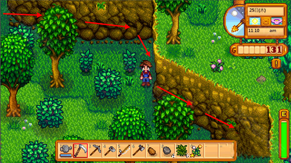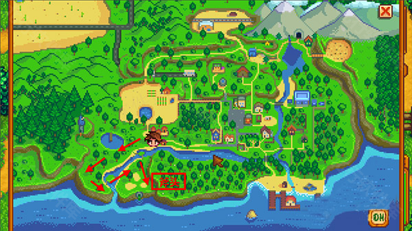 5、从自家农场出发,向南行进选择下面的路,随后稍微向右,经过两座小木桥。