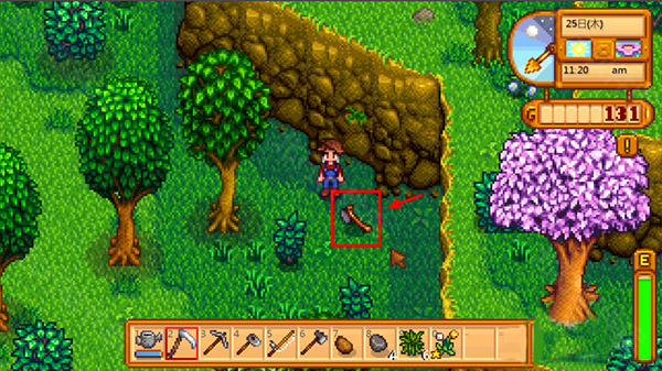 6、抵达高地后,继续沿着高地的轨迹向南行进即可找到斧头。