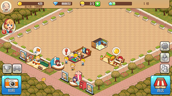 开心商店游戏拥有许多的道具,这些道具能增加收入,玩家还可以建造建筑,或对其进行升级,来吸纳更多的顾客,对顾客提供帮助能获得奖励。