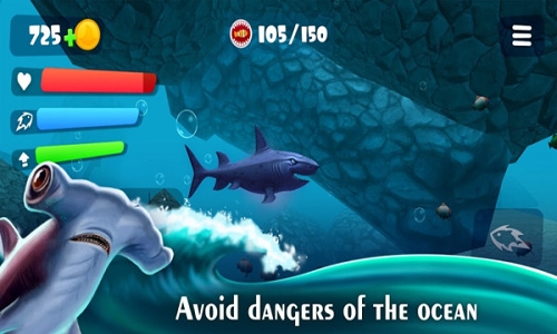 《饥饿鲨鱼进化》是一款以鲨鱼为主角的冒险生存游戏。在游戏里,玩家扮演鲨鱼,可以吃掉游戏中的其他鱼类,从而更快地成长,这是一个弱肉强食的世界。玩家不仅能吃其他鱼类,还能捕食众多其他海底生物,甚至连人类和天上飞的海鸥也不放过。游戏中有许多不同的鲨鱼等待玩家解锁。