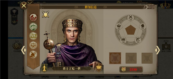 第二个路线,属于第一个路线的改进版,毕业阵容为:汉尼拔勇猛一定等级,不用太高,霍去病后勤一定等级,不用太高,萨拉丁后勤高,亚历山大三星,罗宾汉二星,蒙特祖玛二星,李世民三星