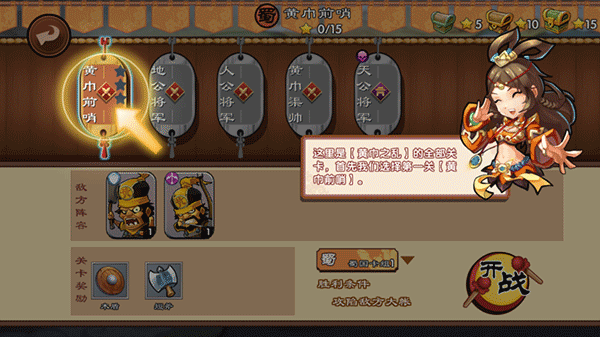 3、蜀国故事有十四个战役组成,让我们先从第一场战役【黄巾之乱】开始吧。