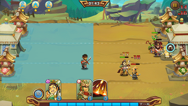 2、太史慈:伤害尚可,进场会召唤友方小兵作为肉盾,5次普攻后会有个小爆发,费用较低,剧情获取。