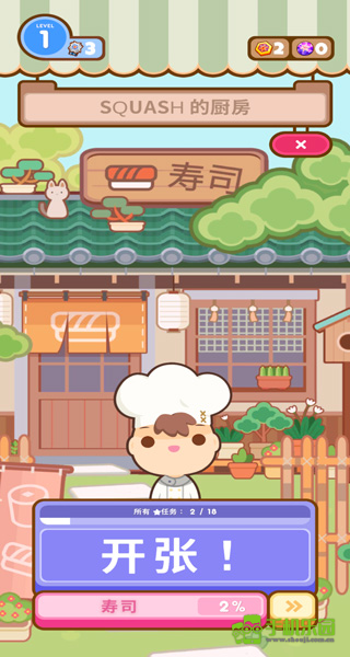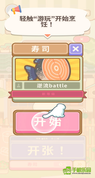 2、完成新手引导后,你可以选择不同的游戏模式开始挑战。以单人模式为例,点击“开张”按钮即可正式开启你的餐厅经营之旅。