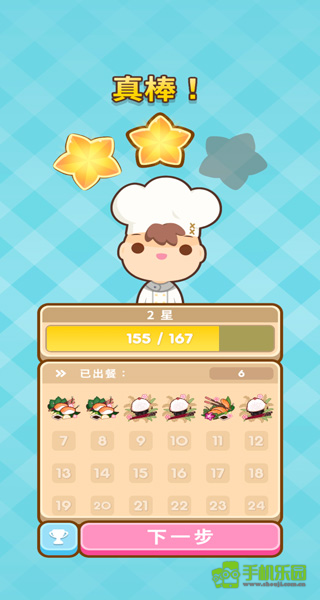 5、在规定时间内完成尽可能多的订单,获取高分并积累经验。通过升级厨师技能和解锁新食谱,让餐厅更上一层楼。