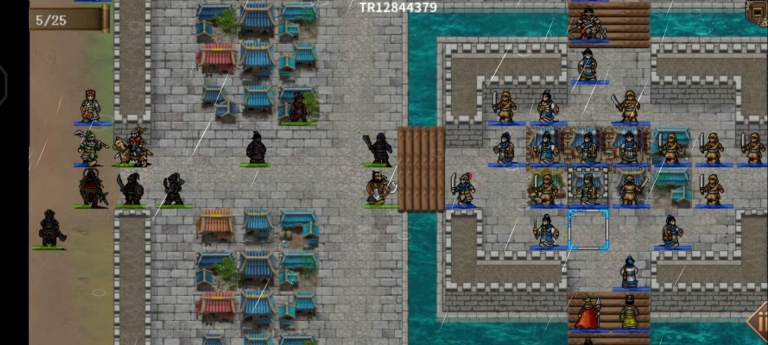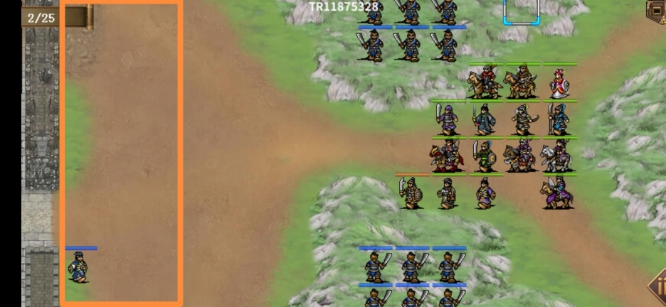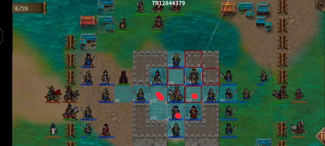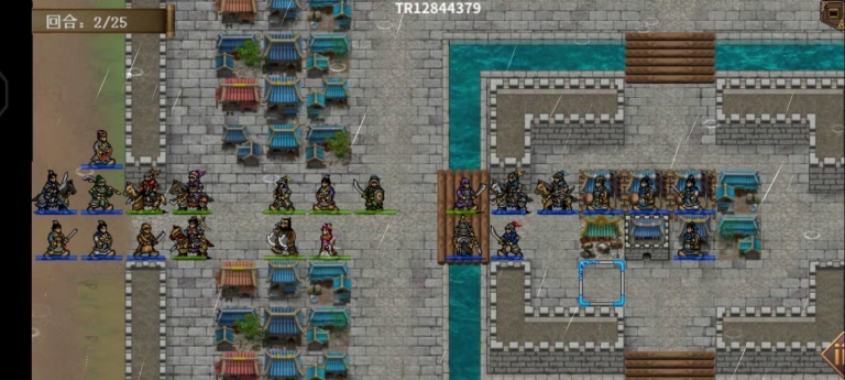 第二回合:首个前来“送”的法师已然现身。曹性、吕布各砍一刀,吕布借助绝影宝马,还能够退回城池之中恢复状态。宋宪需留意局势,切勿急于补刀,因为曹性很可能承受不住,此时应优先补血,或者给曹性吃防御果,亦或是通过SL大法刷曹性的格挡(说实话,曹性佩戴同心结后,格挡概率相当高)。陈宫在民房内,凭借防水阵能获得110的加成,优先攻击多个目标,若能秒将,释放单体技能也可行。臧霸、高顺要充分利用装备的反击后反击特性,结合自身属性,很容易打出三刀(凭借自身属性就容易触发双击,对面反击后再补上一刀,便是三刀)。此回合,高顺、魏旭这一路务必要将两个小兵都击杀,否则于禁不会过来。要是杀不掉,就通过SL大法刷双击暴击。此时貂蝉要出去给臧霸加攻击。