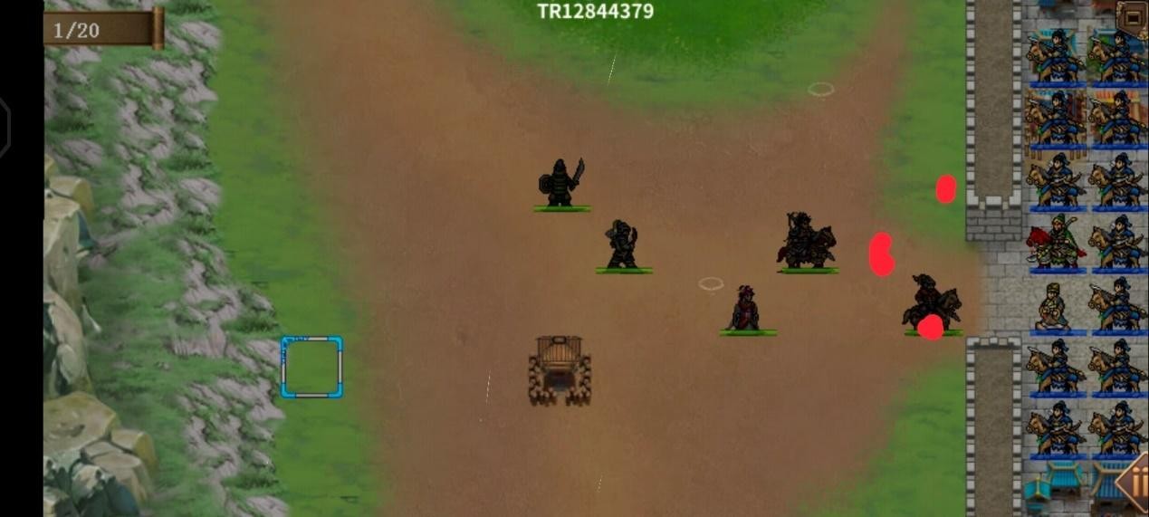 关卡流程:推荐按我的站位来打,上路是一帮腿快的,吕布第二回合就能对话张飞,占好城池,上路挺简单的,注意分散站位,炮车子弹会分裂,如下图。