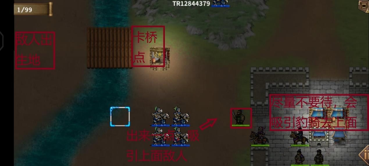 7.其他:本关医生迷路了,有点小难,可以陈宫带上神农本草经。注意伏兵范围。可以摆好阵型等骑兵、弓骑兵过来打。打完往后把高顺放在上面伏兵出现的附近吸引火力,全力杀左侧伏兵,等城里的人出来后记得优先杀法师,留残血给敌方法师回血。记得主动去触发伏兵,友军触发伏兵会很被动。