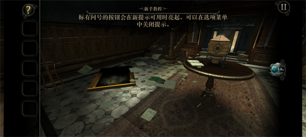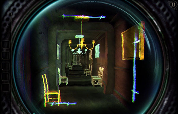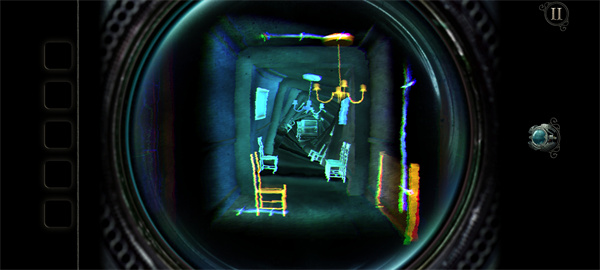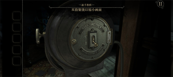 5、在手提箱前面戴上目镜,会看到一句话“打破封印,找到虚空”。然后,回到玩具屋,使用目镜查看屋内。移动椅子、画框和吊灯,把所有东西都调整一遍,接着画面会往前移动。