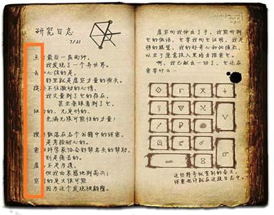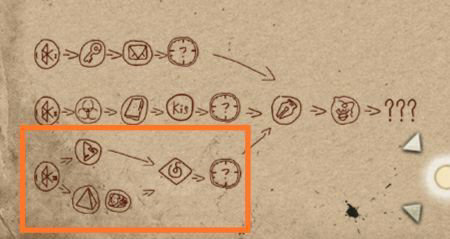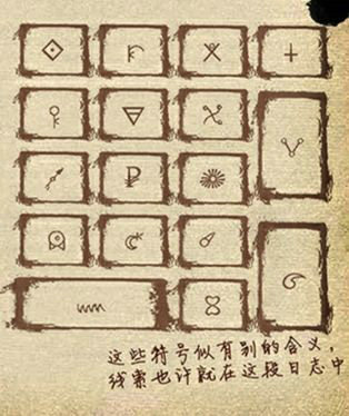 这几个符号对应的正是刚刚“日志”上的另外一条线索,右半边上的图案。