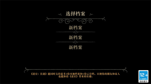 2、进入游戏选择档案,游戏最多能同时支持三份本地档案和一份云存档;
