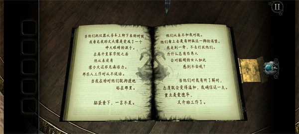 7、打开桌上的书,阅读阿比盖尔的文字。然后,旋转书本旁边机关盒底部的圆盘,获取黄铜机械硬币。在物品栏中点开硬币,将硬币重组成新的形状。