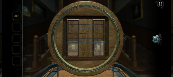 3、放大玩具屋的大门。逆时针转动中央硬币打开门锁。然后,打开两扇铁门,这时里面的小门也会打开。