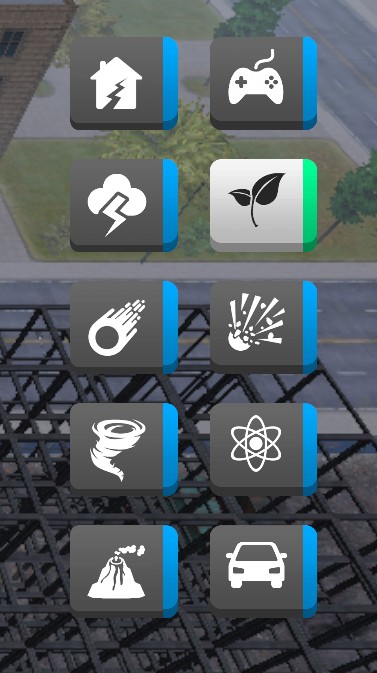 2、随后进入这个大城市,这里的车辆井然有序,我们要做的就是破坏这里的一切事物,这里是你能破坏这座城市的工具,天灾、人为爆炸,这里都可以做到。