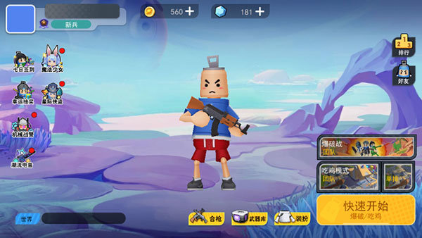 1、下载后打开进入游戏,这边我们选择的是吃鸡模式,游戏中还有其他的游戏模式