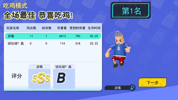 4、完成游戏之后我们可以看到自己的伤害值和生存时间